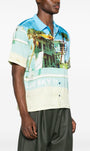 Camisa de manga corta de viscosa orgánica con ribete en contraste en cuello y mangas, botones de plástico reciclado, un bolsillo en el pecho izquierdo