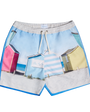 Bañador de nailon reciclado con estampado integral, bolsillos laterales inclinados y bolsillo con velcro en la parte posterior con remache de metal.