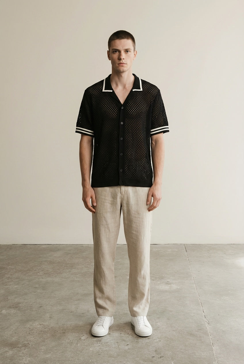 Camisa de manga corta de viscosa orgánica con ribete en contraste en cuello y mangas, botones de plástico reciclado, un bolsillo en el pecho izquierdo