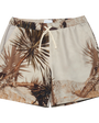 Bañador de nailon reciclado con estampado integral, bolsillos laterales inclinados y bolsillo con velcro en la parte posterior con remache de metal.