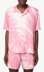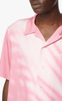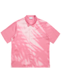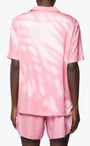Camisa de manga corta de viscosa orgánica estampada ecológicamente con bolsillo en el pecho izquierdo y logo bordado, botones de plástico reciclado