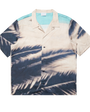 Camisa de manga corta de viscosa orgánica estampada ecológicamente con bolsillo en el pecho izquierdo y logo bordado, botones de plástico reciclado