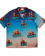 Camisa de manga corta de viscosa orgánica con estampado sostenible, logotipo bordado en el pecho izquierdo y botones de plástico reciclado