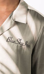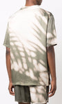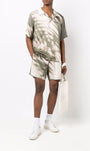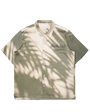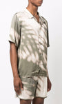 Camisa de manga corta de viscosa orgánica estampada ecológicamente con bolsillo en el pecho izquierdo y logo bordado, botones de plástico reciclado