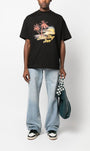 Camiseta de manga corta con cuello redondo de algodón orgánico con gráfico de letrero serigrafiado