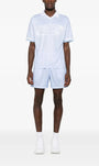 Mesh Soccer shorts with contrast logo pockets and hidden drawstring