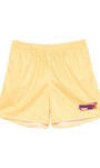 Mesh Soccer shorts with contrast logo pockets and hidden drawstring