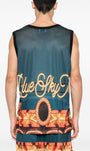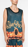 Printed mesh basketball tank top with contrast profile