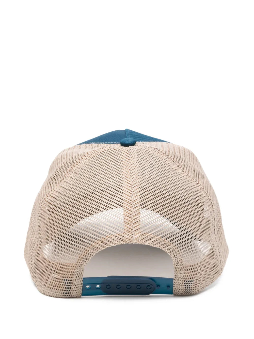 Logo embroidered curved visor cotton cap fabric front, mesh sides & snapback